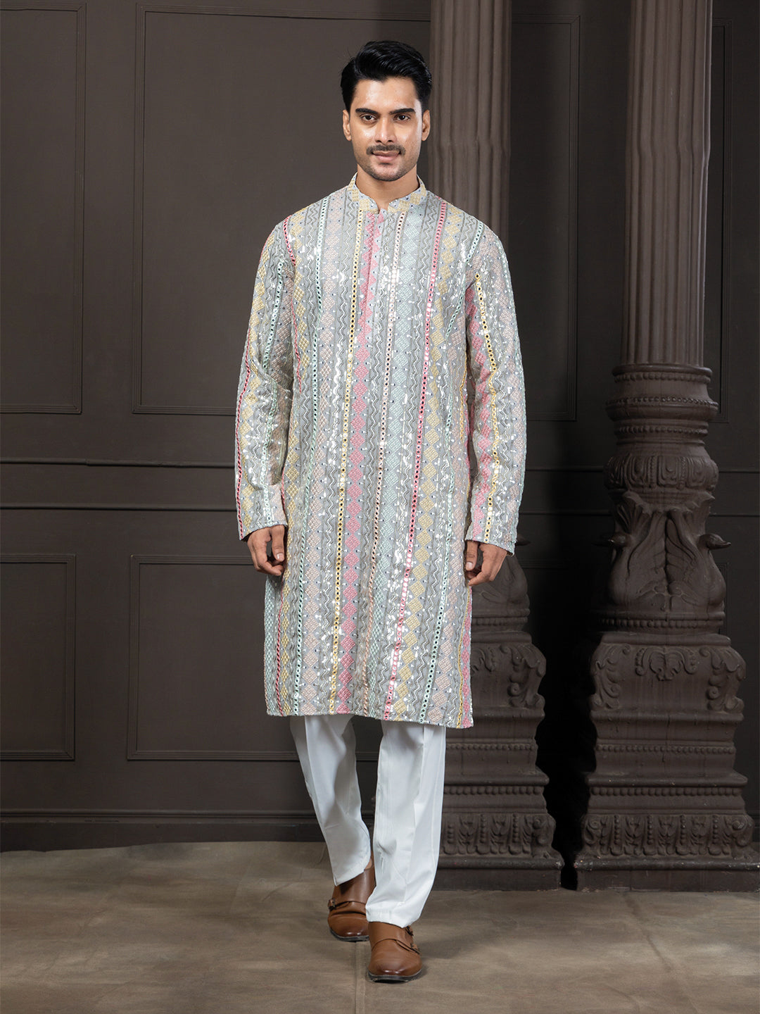 Ekyaa's expert design team always stays ahead to make your outfit memorable. We follow the trend in our style. The highlighting thing is that in our store, you find comfort designs from Royal Design. The traditional hand embroidery to contemporary charm. From Indo-Western fusion to traditional silhouettes, our mens sangeet outfit collection is designed to make you confident, stylish, and fashionable.
