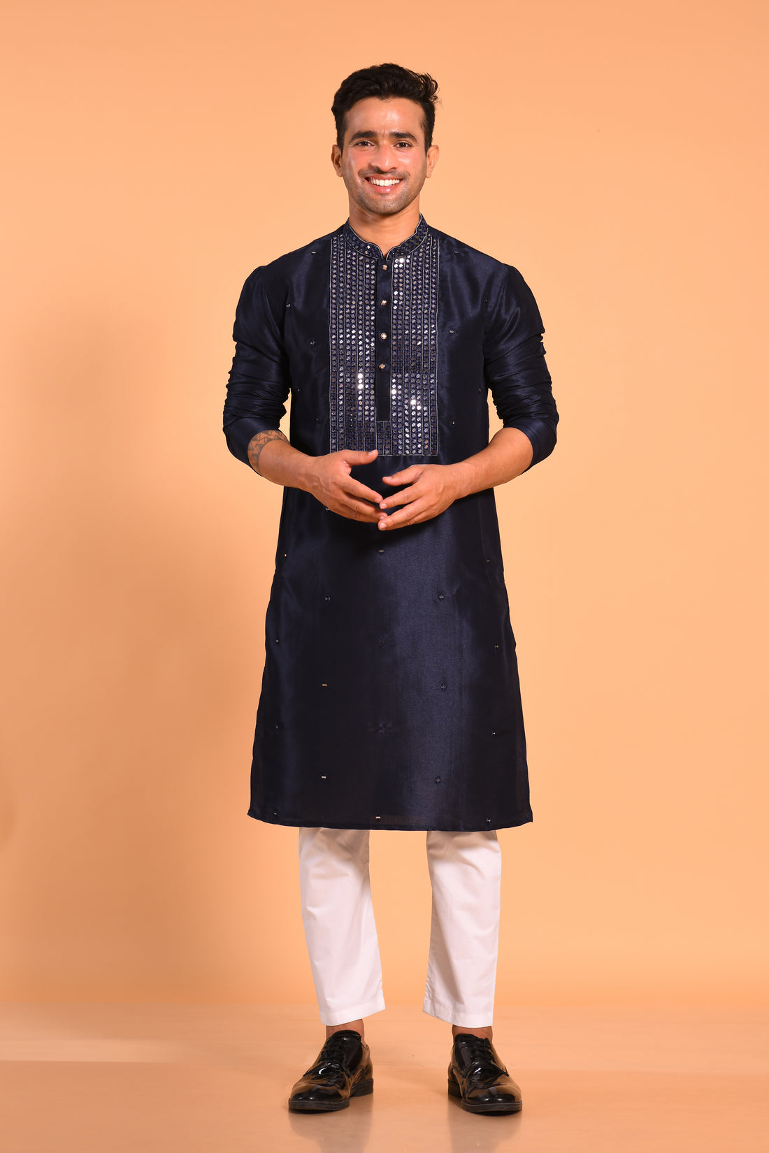 Navy Blue Real Mirrorwork Kurta