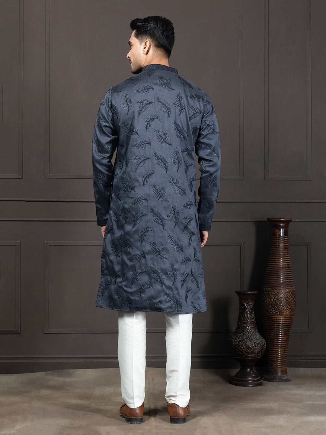 We currently do not offer customization for the embroidery or the Pattern on the kurta for all our online Orders. Additionally, altering or removing the embroidery on the kurta-pyjama set is not feasible, as it needs to align with the product image displayed on our website. However you can talk to our Stylist over the call for your custom requirements.