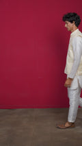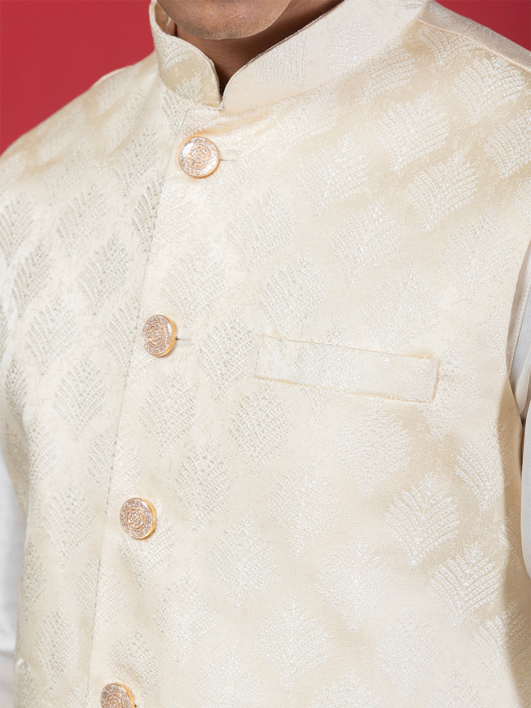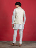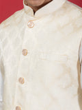 Cream Ethnic Motif Jacquard Nehru Jacket with Kurta & Pyjama