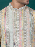 Cream Multicolor Georgette Mirrorwork Embroidered Kurta