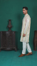 Ekyaa has a great selection of traditional kurta pyjamas and designer ethnic wear for men till the clothing size of 46 (xxxl) in some designs. However, one can refer to the size table or chart for accurate waist measurement, chest, or shoulder size.