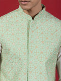 Pistachio Green Zari Embroidered Jacket set with Kurta and Pyjama
