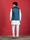 Teal Blue Woven Jacquard Ethnic Motif Nehru Jacket