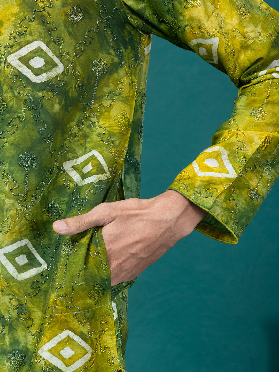 TIE DYE EMBROIDERY KURTA WITH SEQUIN DETAILING AND PRINT