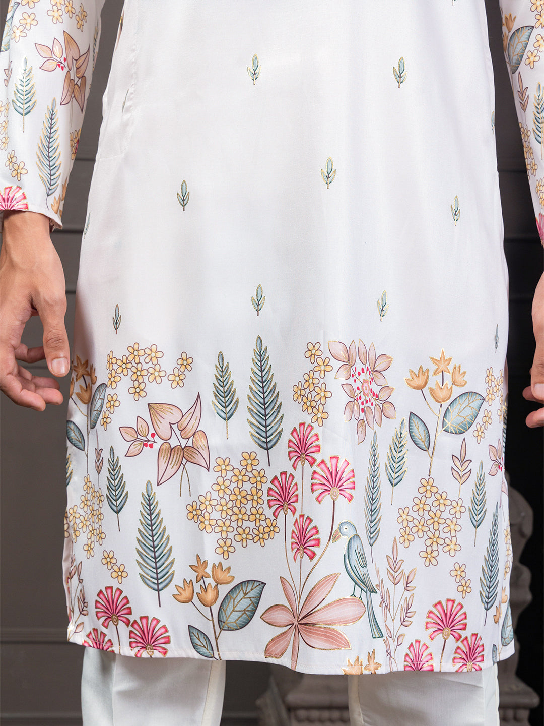 Add a fresh, festive touch to your wardrobe with this Men’s Floral Printed Kurta.