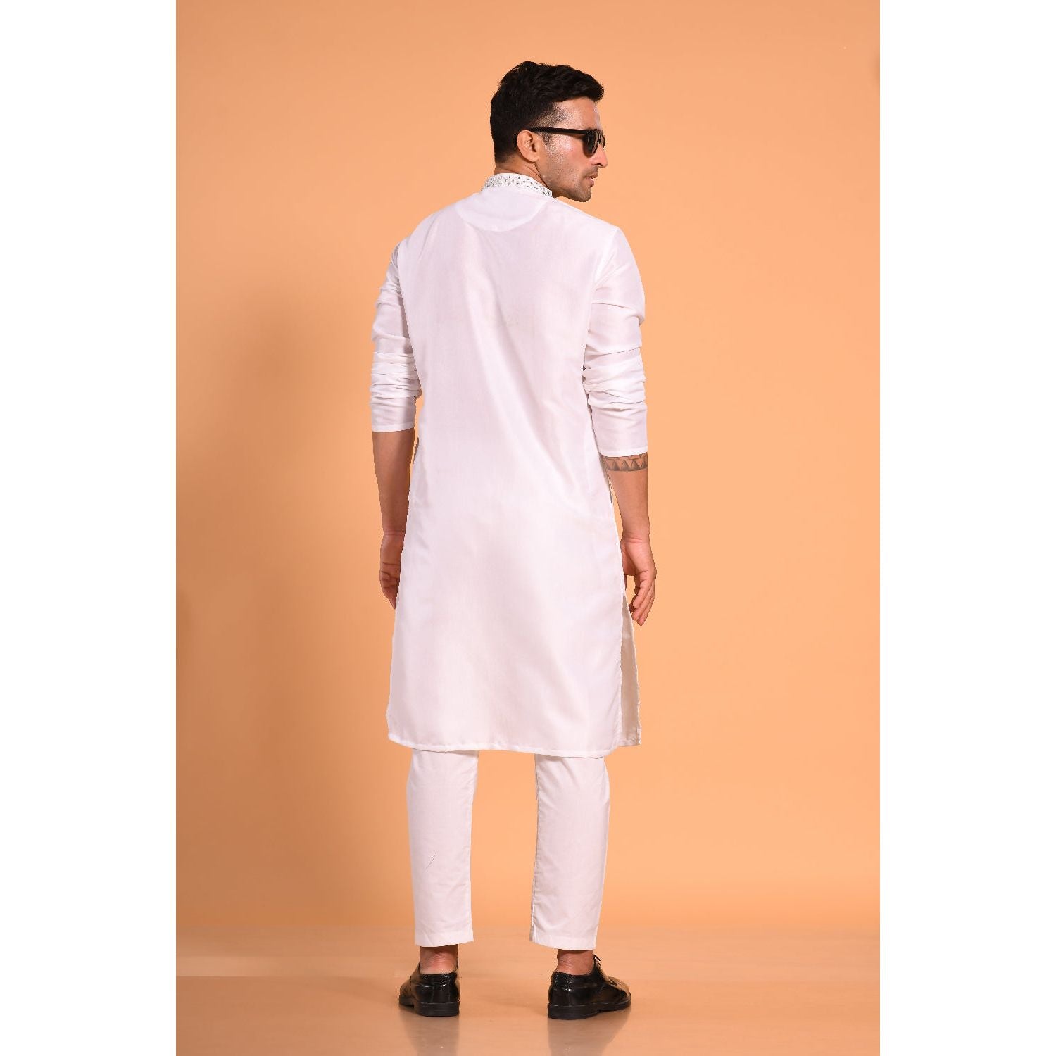 We currently do not offer customization for the embroidery or the Pattern on the kurta for all our online Orders. Additionally, altering or removing the embroidery on the kurta-pyjama set is not feasible, as it needs to align with the product image displayed on our website. However you can talk to our Stylist over the call for your custom requirements.